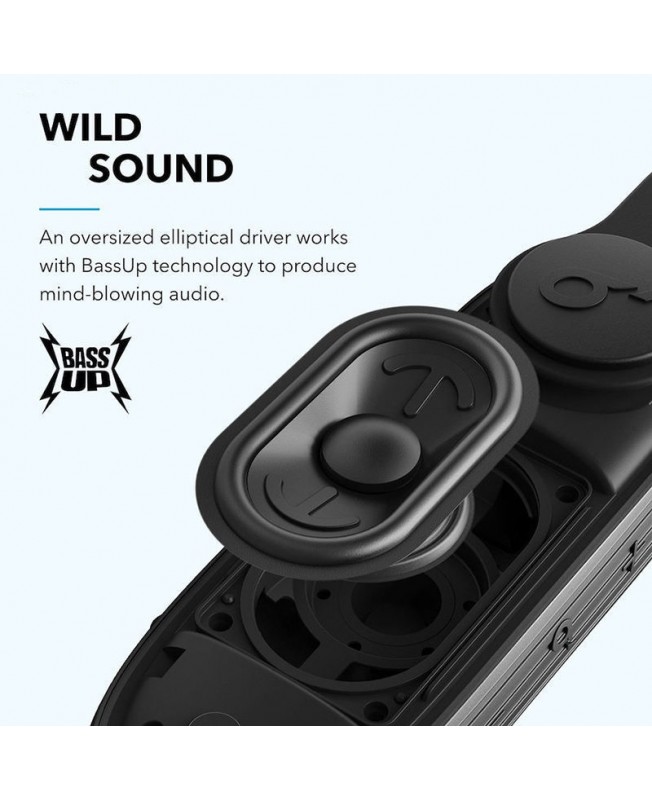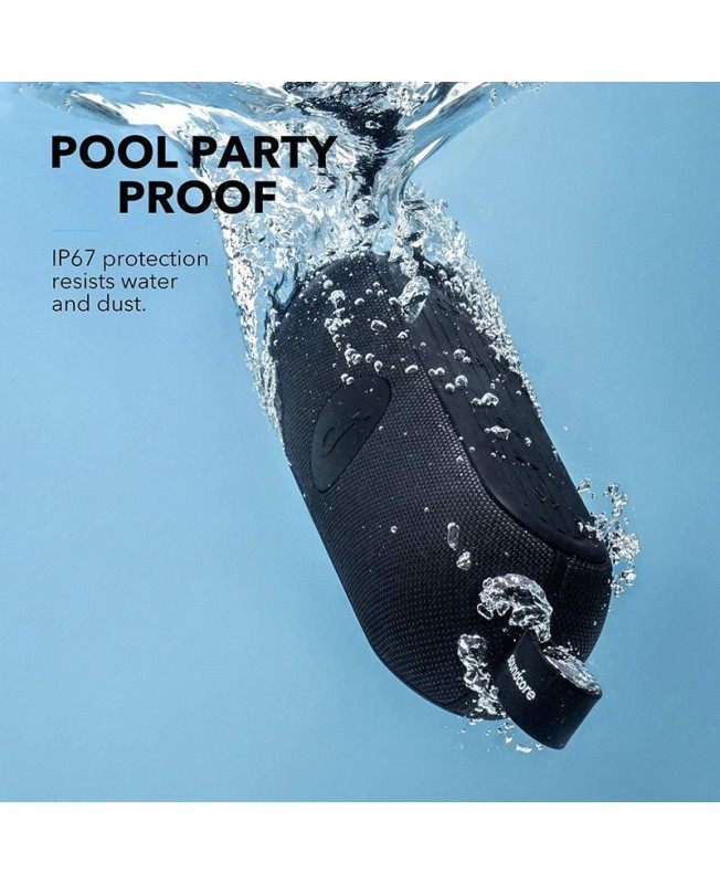 اسپیکر بلوتوثی ساندکور آیکون پلاس انکر که دارای اتصالات بی سبم به کمک فناوری بلوتوث نسخه 5.0 و با سیم به کمک جک 3.5 میلی متری صدا یا همان AUX می باشد و با گواهی استاندارد IP67 به راحتی می توان آن را در هر مکان دلخواه با خود برد.