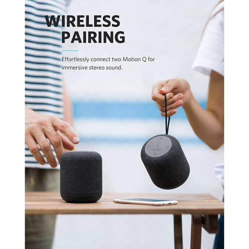 اسپیکر بلوتوثی انکر که دارای ابعاد و وزن کمی می باشد و همین ویژگی ها در کنار وجود یک یند پارچه که توسط شرکت سازنده بر روی آن قرار داده شده، این امکان را می تواند برای کاربران به وجود بیاورد تا بتوانند به راحتی موشن کیو را حمل و در هر مکانی از صدای ان لذت ببرند.