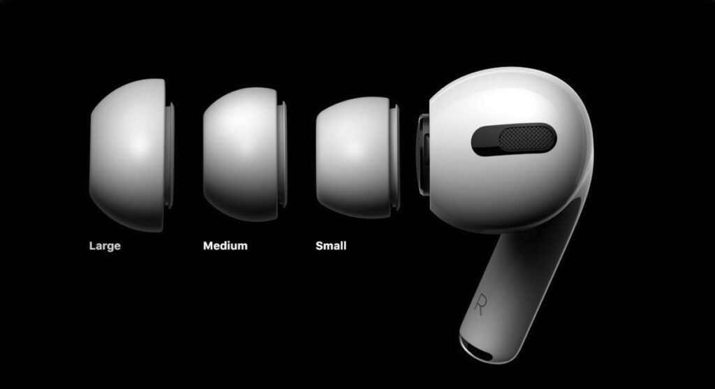 ایرپادز 2 پرو با بهره مندی از سه سری سیلیکونی انعطاف پذیر با سایز های مختلف ، تناسب قابل تنظیم تری را ارائه می دهد. با یک مخروطی داخلی، آنها با شکل گوش شما مطابقت دارند و هندزفری شما را در جای خود محکم می کنند و یک مهر و موم استثنایی برای حذف نویز پسیو ایجاد می کند.
