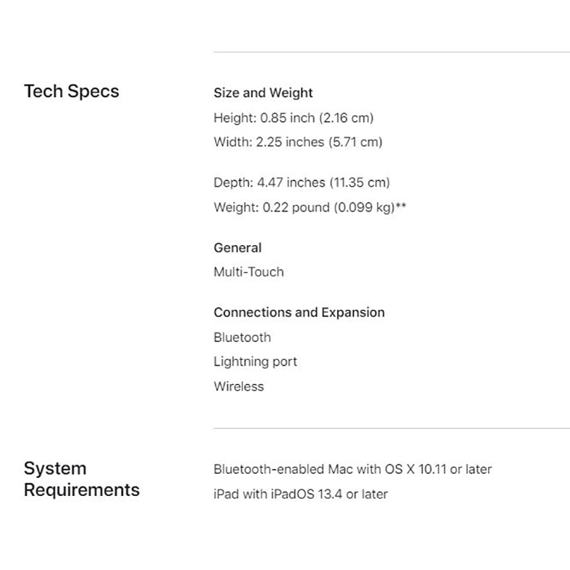 سایر ویژگی هاقابلیت اتصال با بلوتوث قابلیت شارژ با کابل Lightning to USB استفاده از فناوری Multi-Touch دارای پورت Lightning