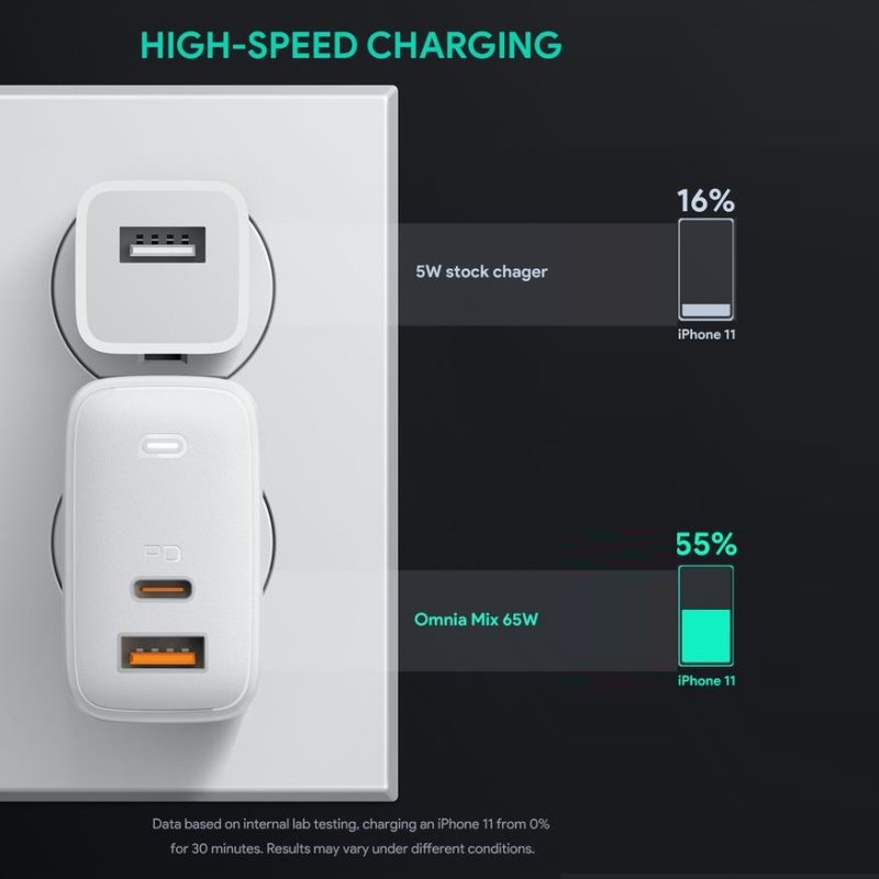 آداپتور شارژ آکی توانایی شارژ دستگاه های متصل به خود را با حداکثر توان خروجی 65 وات در مجموع همراه با قابلیت های محافظتی در برابر دما و نوسانات ولتاژ دارد و می تواند گزینه مناسبی برای خرید و استفاده در مسافرت ها و همچنین شارژ دستگاه های جدید اپل باشد.