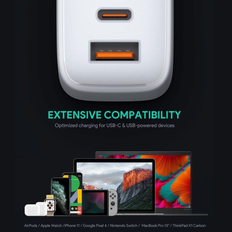 سازگار با تمام دستگاه های USB از جمله گوشی های آیفون و سامسونگ، تبلت ها، هدفون ها و بلندگوهای بلوتوث، ردیاب های تناسب اندام، ساعت های هوشمند و حتی مک بوک های اپل با استفاده از پورت Type-c را دارد.