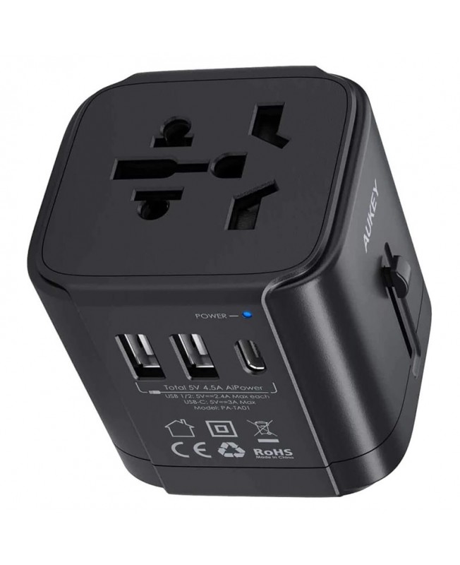 شارژر دیواری آکی مدل Aukey PA-TA01 دارای سه تبدیل برای اتصال به پریز برق میباشد که بصورت خشابی باز و بسته میشود و شامل تبدیل برق ایرانی ( دو شاخه ) ، تبدیل برق آمریکایی و تبدیل برق اروپایی است. همچنین یک خروجی برق که میتوانید همه آداپتور ها مثل آداپتور ایرانی ، اروپایی و ... را به آن متصل نمایید ، روی کالا وجود دارد. ویژگی خاص شارژر دیواری آکی PA-TA01 وجود 2 درگاه خروجی USB-A که توان خروجی هر یک 5V/2.4 آمپر و یک درگاه خروجی USB-C که توان خروجی آن 5V/3A است ، میباشد. همچنین لازم است بگوییم که جنس این آداپتور از پلاستیک سخت میباشد و وزن بالایی ندارد و به راحتی میتوانید آن را حمل نمایید.