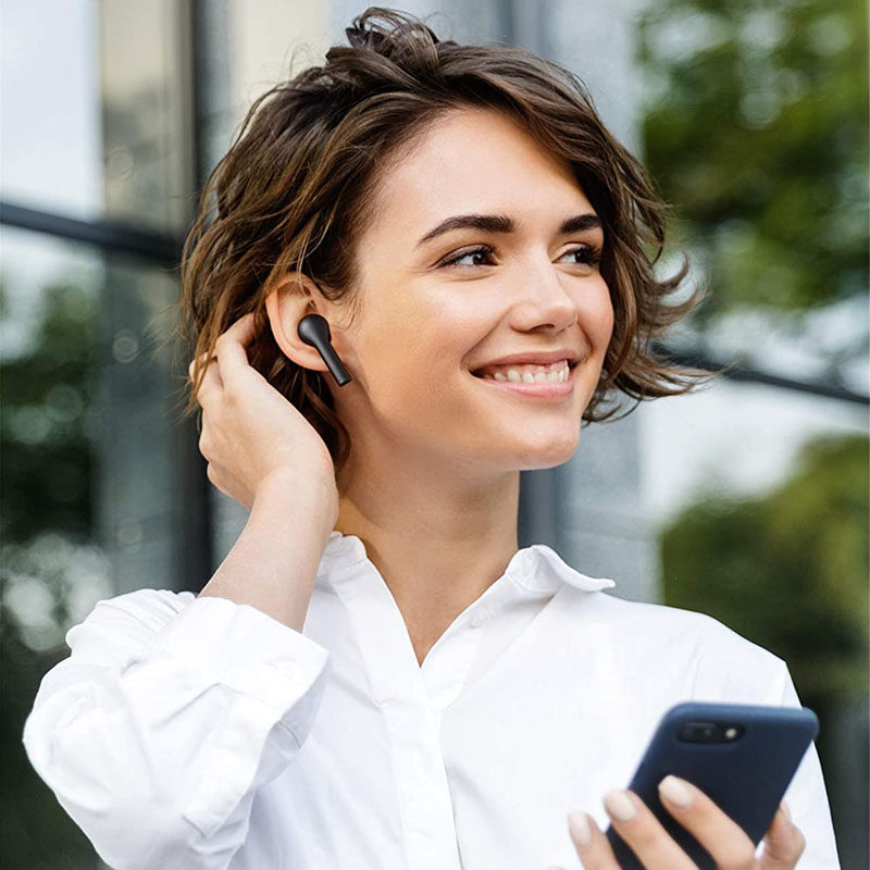 هدفون بلوتوثی True Wireless Earbuds EP-T21 محصول شرکت آکی است این هدفون به تنهایی بعد از شارژ شدن تا 5 ساعت کار می کنند و کیس شارژ آن هم تا 6 بار توانایی شارژ کردن ایر بادز ها را داراست و تا 35 ساعت توانایی پخش موسیقی را به ارمغان می آورد. این محصول از فناوری میکروفون MEMS پشتیبانی کرده که سبب می شود مکالمه با آن بسیار با کیفیت باشد و همچنین تکنولوژی IPX4 که ضد تعریق می باشد درا داراست
