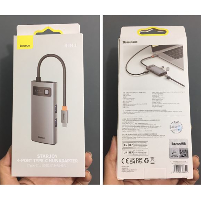 این هاب دارای 4 درگاه مختلف به همراه یک کابل تایپ سی متصل به خود می باشد که می تواند نیاز کاربران را به داشتن درگاه های متنوع برطرف کند، درباره مشخصات پورت های این هاب هم باید بگوییم که درگاه USB 3.0 آن از حداکثر سرعت انتقال داده 5Gbps ( با توانایی اتصال به USB2.0 و USB1.1 )، درگاه Type-C و درگاه RJ45 یا همان LAN آن از سرعت های 10Mbps, 100Mbps, 1000Mbps پشتیبانی می کند.