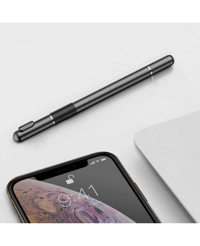 قلم لمسی بیسوس دارای سری خودکار و سر دیگر آن مخصوص دستگاه های لمسی می باشد.این قلم علاوه بر 2 کاره بودن ، باریک ، سبک و مناسب برای تمامی صفحه نمایشهای لمسی خازنی از جمله تبلتها، موبایلها و کنسولهای بازی می باشد.همچنین شما می توانید از این قلم دو کاره بیسوس هم به عنوان خودکار استفاده نمایید و یادداشت های روز مره خود را بنویسید و هم از سر دیگر آن به عنوان قلم لمسی استفاده کرده و به طراحی و یا کار با وسایل لمسی بپردازید.و یک سری زاپاس هم در بسته بندی Baseus ACPCL-01 Pen وجود دارد که در صورت خرابی سری اول می توانید از آن استفاده کنید.