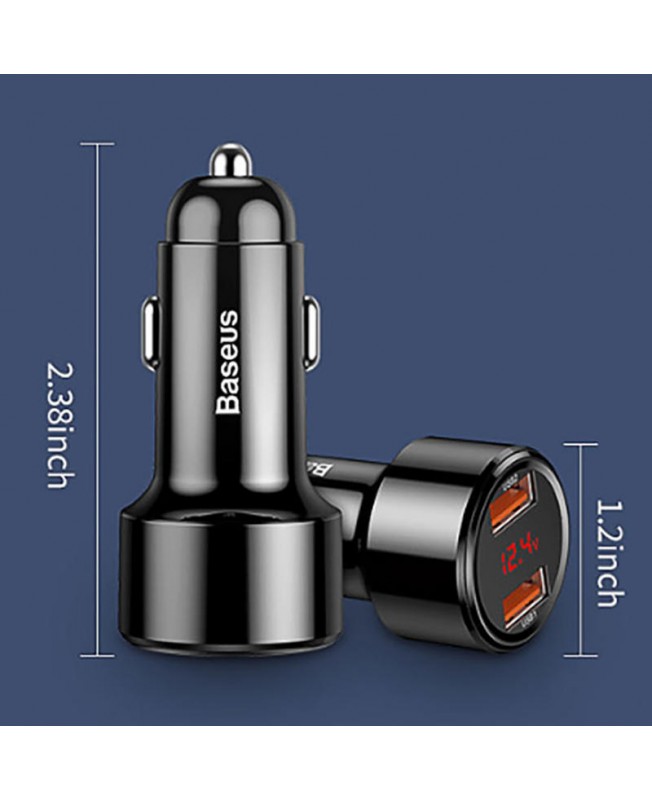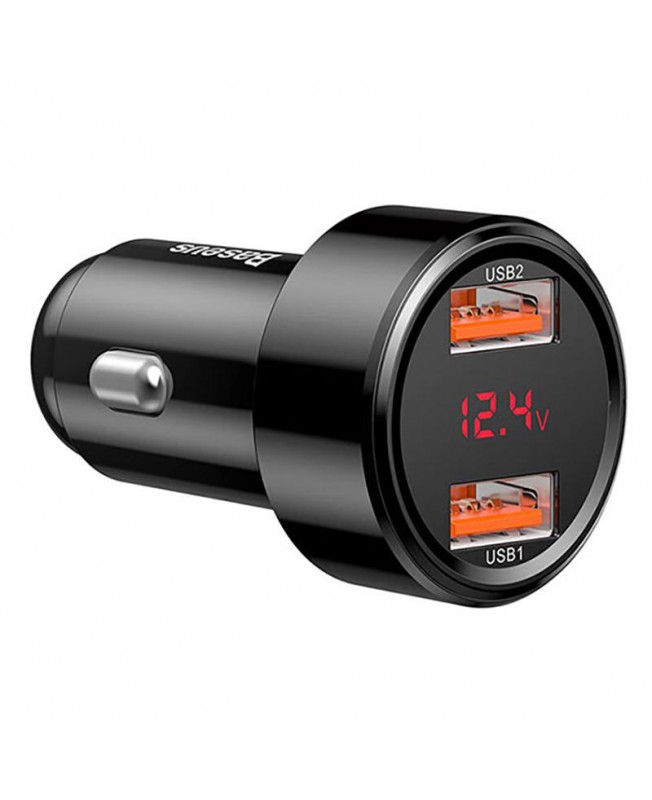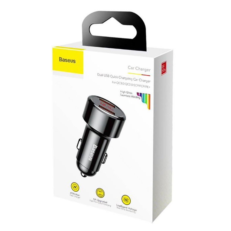 شارژر فندکی دو پورت بیسوس که دارای توان خروجی کلی 45 واتی با شدت جریان حداکثری 6 آمپری می باشد که می تواند دو دستگاه را به طور همزمان و با نشان دادن آمپر مصرفی شارژ کند.
