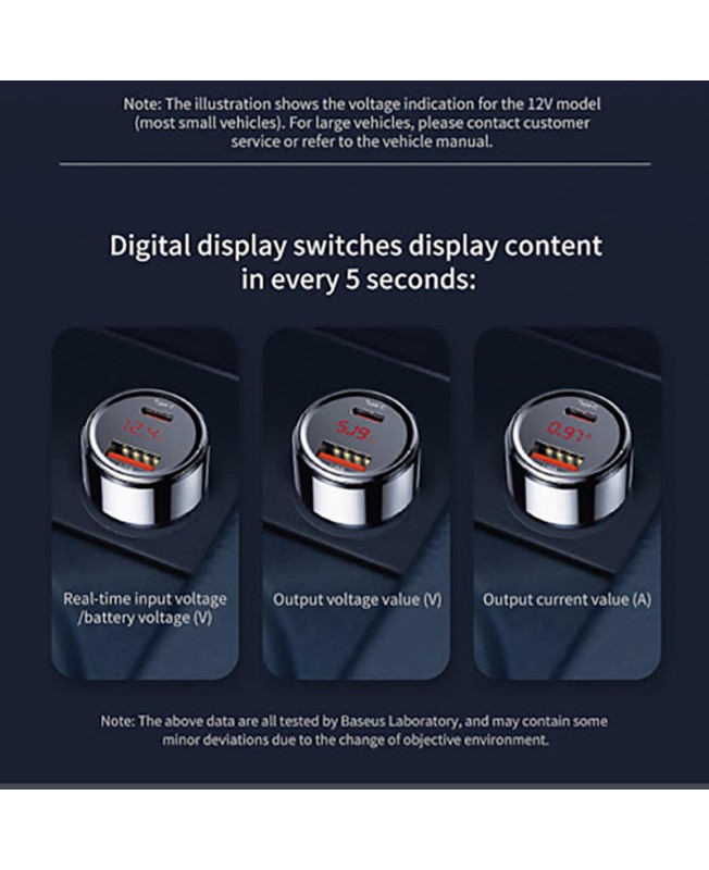 شارژر فندکی BS-C20A برند بیسوس با ابعاد 61*30*30 میلی متر و وزن 25 گرم دارای دو پورت خروجی USB با شدت جریان و ولتاژ 5V/6A و بدنه ای آلومینیومی است که آن را در برابر ضربه و خراش بسیار مقاوم کرده است. شارژ فندکی 45 واتی بیسوس دارای قابلیت های QC3.0/QC2.0/SCP/FCP/PE+ است و می تواند گوشی های سازگار با شارژ سریع را در کمترین زمان با استفاده از تکنولوژی QC3.0 به سرعت شارژ کند. از ویژگی های مهم این شارژر فندکی مطاقبت ولتاژ مناسب با دستگاه شما می باشد و با وجود نمایشگر دیجیتالی بر روی آن می توانید در هر لحظه میزان ولتاژ را ببینید و اگر ولتاژ کمتر از 12V بود باید شارژر فندکی را چک کنید تا درست در محلش نصب شود و در صورتی که هنگام شارژ بین V13.3-14.8 بود ولتاژ نرمال است؛ و در آخر باید به این نکته اشاره کرد که شارژر فندکی BS-C20A با ماشین های سواری و کامیون های مختلف سازگار است.