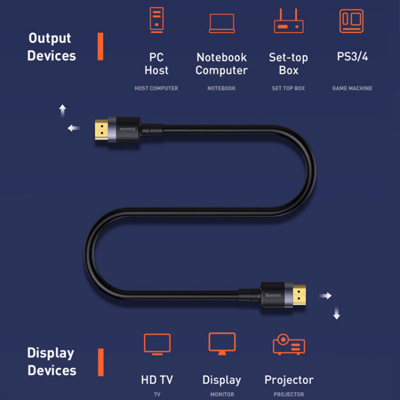 Baseus از محبوب ترین برند های عرضه کننده لوازم جانبی بوده که توانسته محصولات مختلف و کاربردی را ارائه کند، باسئوس این بار با کابل HDMI به طول 5 متر خواسته تا پاسخگوی نیاز کاربران باشد. این محصول قابلیت پشتیبانی از انتقال تصویر با کیفیت 4K را داشته و دارای نرخ خروجی 60 هرتز بوده که برای استفاده های مختلف مناسب می باشد. این کابل تا پهنای باند 18Gbps را پشتیبانی کرده و تصویر را به صورت پایدار و با کیفیت انتقال می دهد. جنس این محصول از PVC و سیم مسی بوده که سبب استقامت مناسب این کابل شده و همچنین لازم به ذکر است که نسخه HDMI این کابل به صورت HDMI 2.0 بوده که سبب بالاتر رفتن کیفیت نمایش تصویر می باشد. همچنین این محصول از۳۲ کانال استریو به صورت همزمان پشتیبانی می کند.