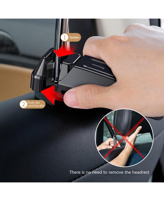 پایه نگهدارنده گوشی موبایل بیسوس مدل SUHZ-A01 که توانایی قرار گیری در پشت سری صندلی اتومبیل را داراست و می توانید گوشی های 4 تا 6.5 اینچ را بر روی آن قرار دهید.
