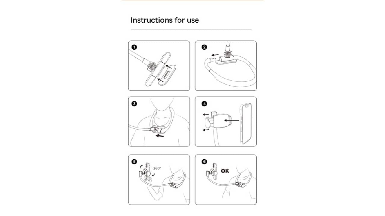 این پایه نوآورانه روشی راحت برای استفاده از گوشی هوشمند شما، آنهم بدون نیاز به نگهداری آن را ارائه می دهد. برعکس سایر پایه ها که روی میز قرار می گیرند، این پایه دور گردن و در مقابل شما قرار می گیرد. بازو و سر انعطافپذیر آن به شما امکان می دهد تا تلفن خود را در هر زاویه دلخواه قرار دهید و از دید مطلوب اطمینان حاصل کنید. بالشتک نرم دور گردن آن، تناسب راحت را فراهم می کند و فشار بر روی شانه ها و ستون فقرات شما را کاهش می دهد.