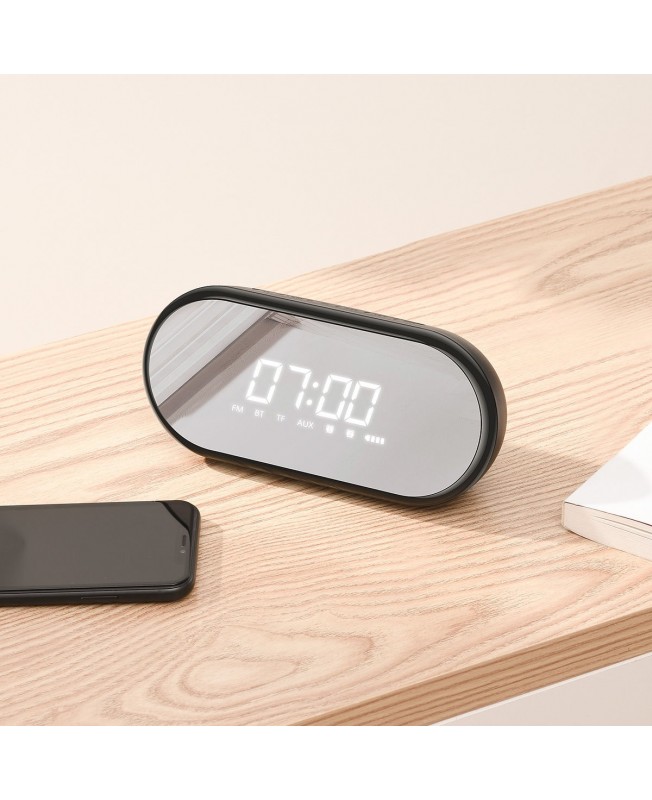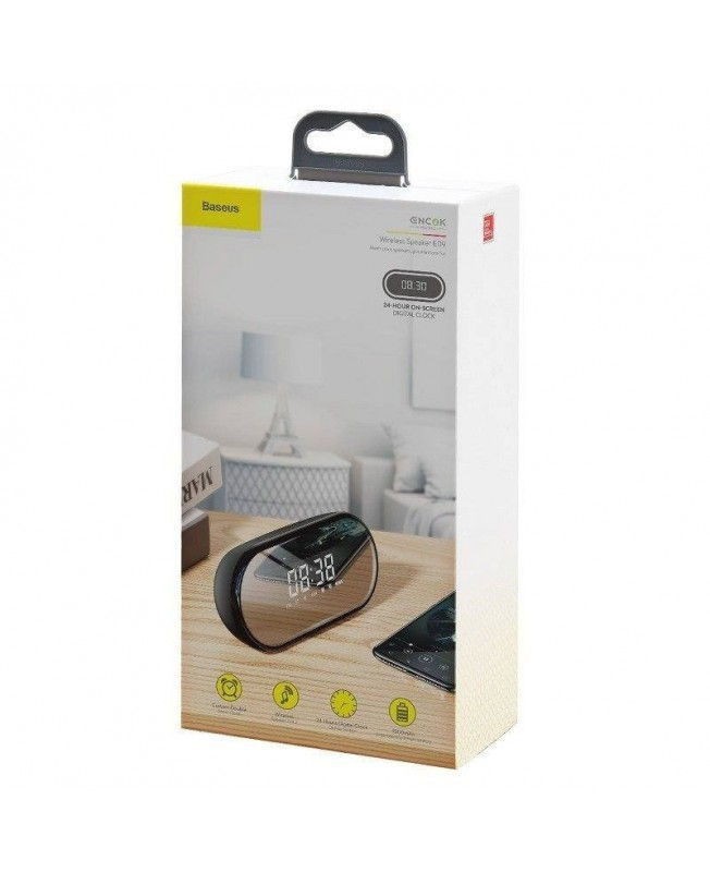 طراحی این اسپیکر به صورت رومیزی بوده و با گذاشتن آن بر روی میز کار و یا اتاق خواب خود می توانید به صورت دلخواه و با استفاده کمی از محیط از موسیقی استفاده کنید. جنس بدنه این اسپیکر از پلاستیکاست که باعث شده این محصول مقاومت بالایی در برابر ضربه داشته باشد. قسمت جلوی اسپیکر Baseus E09 یک صفحه براق قرار گرفته که از طریق آن می توانید تغییر حالت پخش ، ساعت و تایمر و .... را مشاهده کنید. در قسمت بالای این اسپیکر کلید های فیزیکی قرار گرفته است که با استفاده از آن می توانید تغییرات موسیقی ، تغییرات ولوم و تنظیمات ساعت و ... را به راحتی انجام دهید،ویکی از قابلیت های دیگر این محصول ساعت زنگ دار می باشد که باعث شده بتوانید سر موقع به قرار های خود برسید.