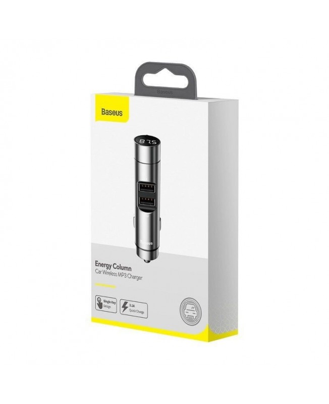 شارژر فندکی باسئوس مدل Energy Column Car Wireless MP3 Charger دارای بدنه ای فلزی با ابعاد 88.2*20.6*20.6 میلی متر با وزن 32.6 گرم است که دارای دو درگاه خروجی USB-A است. نوع استفاده از اف ام این شارژر فندکی به این صورت است که باید فرکانس ضبط خود را بین 87.5 مگا هرتز تا 99.9 مگا هرتز قرار دهید و با استفاده از فلش مموری موزیک گوش دهید و یا اینکه بصورت بلوتوثی با موبایل به آن متصل شوید. توان خروجی شارژر فندکی باسئوس نیز 15 وات ( 5V/3.1A ) در بیشینه حالت خود می باشد که قابلیت شارژ سریع را هم دارد. همچنین روی این شارژر فندکی یک نمایشگر وجود دارد که هم ولتاژ باتری و هم فرکانس اف ام را نمایش می دهد. در آخر هم باید گفت که جهت کنترل موزیک می توانید از قسمت چرخشی بالای خود اف ام استفاده نمایید.