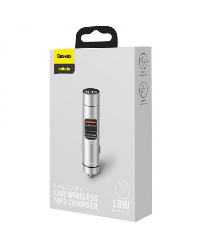 شارژر فندکی باسئوس مدل Energy Column Car Wireless MP3 Charger دارای دو درگاه USB است با توان شارژ 18 وات است که یکی از پورت های آن مخصوص انتقال داده برای پخش موزیک می باشد.