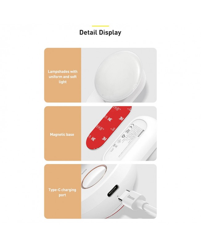 چراغ خواب قابل حمل و شارژی DGFM-02 برند باسئوس با ابعاد 47*74*110 میلی متر و وزن 105 گرم دارای باتری 1200 میلی آمپر ساعتی و بدنه ای از جنس پلاستیک ABS+PC می باشد که علاوه بر زیبایی ، مقاومت بالایی را در برابر ضربه و فشار به این محصول بخشیده است. لامپ Human Body Induction Night Light DGFM-02 باسئوس خیال شما را از رفت آمد های شبانه و در تاریکی راحت می کند زیرا دارای سنسور حرکت می باشد و می توانید با کمک پایه چسبی موجود در بسته بندی ، پایه را به دیوار و سپس چراغ را با ویژگی آهنربایی به آن وصل کنید. همچنین باید گفت که نحوه کار این لامپ و روشن شدن آن به این صورت است که باید حبابی چراغ را بچرخانید ، و می تواند در سه حالت روشن ، خاموش و اتوماتیک قرار دهید که در صورت قرار دادن در حالت آخر به کمک سنسور حرکت به طور خودکار روشن/خاموش می شود.