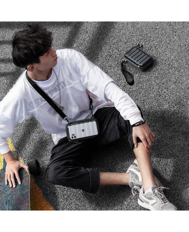 کیف همراه LFBFZ-A0 برند بیسوس با جنسی از پلاستیک ABS + که در برابر ضربه و فشار مقاوم می باشد ، همین قابلیت به شما اجازه می دهد تا با خیال راحت وسایل خود از جمله گوشی تلفن همراه را درون آن قرار دهید و به سادگی آن را حمل کنید.کیف قابل حمل Hermit در مقابل شوک ، سقوط و تا حدودی در مقابل رطوبت نیز مقاوم است وعلاوه بر این دارای دو بند قابل تنطیم نیز می باشد که می تواند گوشی های موبایل تا سایز 6.5 اینچ ، پاور بانک ، انواع کابل و هندزفزی ، پاور بانک یا هارد اکسترنال ، کارت های بانکی و در آن قرار دهید.