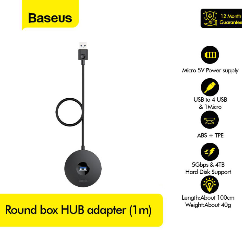 امروزه بسیاری از لپتاپ ها تعداد درگاه کم تری دارند و یا برخی از افراد نیاز دارند که دستگاه های بیشتری را به لپتاپ یا کامپیوتر خود متصل کنند، برای همین منظور برند های مختلف به تولید هاب پرداخته اند تا این نیاز کاربران را برطرف کنند. باسئوس نیز با تولید Round Box Hub Adapter تلاش کرده تا این نیاز را به خوبی برطرف کند به گونه ای که این محصول دارای یک درگاه USB 3.0، سه درگاه USB 2.0 و همین طور یک درگاه تامین انرژی microUsb می باشد. از ویژگی های بارز این هاب می توان به سرعت انتقال اطلاعات تا حداکثر 5Gbps و قابلیت سازگاری با هارد ها اشاره کرد که توانایی هایی کاربردی به حساب می آیند. بنا به گفته باسئوس هاب CAHUB-U01 برای زمانی که هارد 2 ترابایت به آن متصل است نیاز به تامین انرژی از درگاه microUSB با ولتاژی به صورت 5 ولتی دارد. همچنین این کالا دارای وزنی 40 گرمی و ابعادی 60.3*6.3*23 میلی متری است و به راحتی قابل حمل است و طول کابل آن نیز در حدود 10 سانتی متر می باشد. از سیستم های سازگار با هاب Baseus می توان از Mac Os / Windows 7,8,10 و ... در صورت داشتن درگاه USB نام بردکه طول کابل آن نیز 1 متر می باشد.