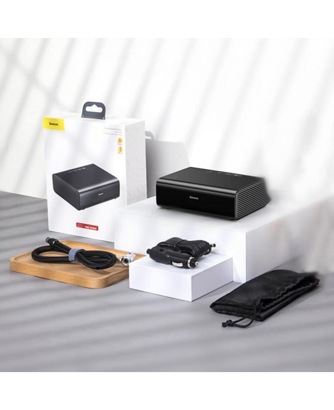شرکت بیسوس علاوه بر محصولات جانبی موبایل ، وسایل مرتبط با خودرو نیز تولید میکند که Inflator Pump یکی از آن محصول هاست. با این کمپرسور بصورت خودکار میتوانید باد لاستیک ماشین یا موتور خود را باد کنید.