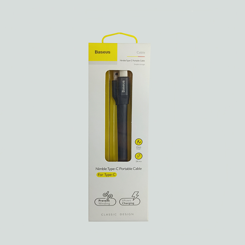 کابل Nimble Type-C Portable Cable محصول شرکت Baseus می باشد و کابلی USB به Type-c است که می توان با استفاده از آن هم دستگاه های دارای درگاه USB-C را شارژ کرد و هم انتقال داده آن دستگاه ها را انجام داد. این کابل از آلیاژ آلومینیوم و TPE ساخته شده و 23 سانتی متر طول داشته که این موضوع سبب شده تا این کابل به راحتی قابل حمل باشد. طبق گفته باسئوس این کابل دارای ویژگی ضد گره خوردگی است و همچنین جریان 2 آمپر را انتقال می دهد که باعث شارژ سریع دستگاه های دارای این ویژگی می شود.