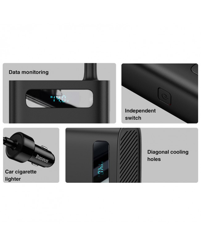 اینورتر باسئوس که با ابعاد جمع و جور و وزن قابل حمل خود می تواند در کنار تبدیل برق خودرو به برق شهری 4 پورت ورودی هم به کاربران ارائه دهد تا دستگاه های خود را در اتومبیل به هنگام نیاز و یا مسافرت شارژ کنند.