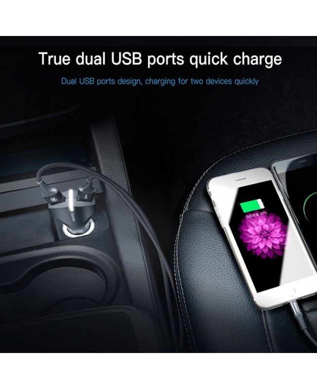 شارژر فندکی باسئوس که دارای دو پورت USB برای شارژ همزمان دو دستگاه با حداکثر توان خروجی 18 واتی است و می تواند در زمان خوبی گوشی های که از قابلیت شارژ سریع پشتیبانی می کنند را شارژ کند و با طراحی جذاب و با کیفیت خود گزینه مناسبی برای انتخاب باشد.