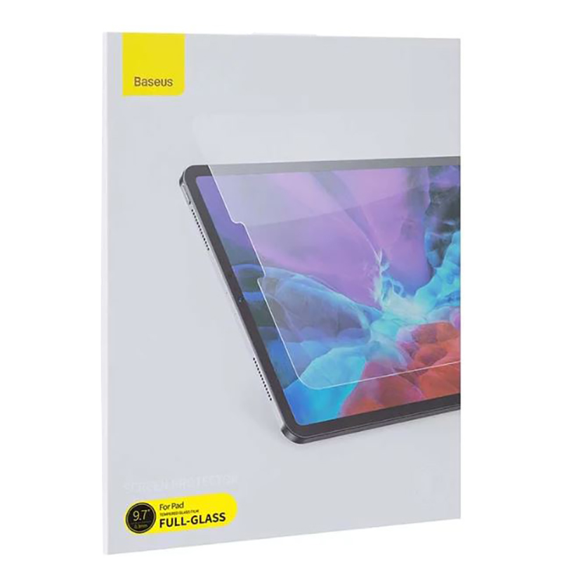 گلس تبلت اپل باسئوس که برای ipad 6 9.7 2018 / ipad 5 9.7 2017 / ipad pro 9.7 2016 / که 9.7 اینچ هستند، مناسب است. ضخامت این گلس که تمام صفحه را پوشش می دهد تنها 0.3 میلی متر است که بسیار نازک است که باعث می شود صخامت تبلت زیاد نشود و از فرم خود را حفظ کند، این محافظ صفحه نمایش مقاومت بالایی در برابر ضربه و خط و خش و همین طور اثر انگشت و لکه دارد. در جعبه این محصول یک قاب وجود دارد که نصب این گلس بر روی صفحه تبلت را ساده تر می کند، باسئوس همچنین در جعبه آن پد مخصوص تمیز کردن صفحه نمایش قرار داده که قبل از نصب گلس، صفحه به وسیله آن تمیز شود و بعد از آن نصب گلس صورت بگیرد.