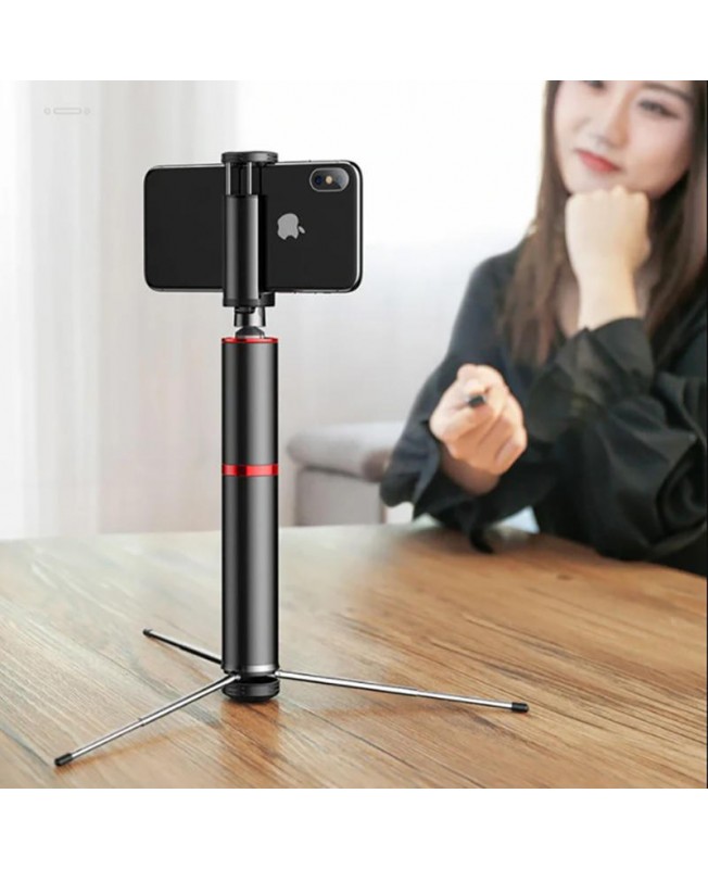 منوپاد sudyzp-d1 برند بیسوس با بدنه ایی از جنس آلیاژ آلومینیوم دارای ابعاد 198.5*31.5 میلی متر و وزن 209 گرم می باشد که تا مقدار قابل قبولی در مقابل فشار و ضربه مقاوم است. sudyzp-d1 قابلیت چرخش 360 درجه را داراست که برای استفاده در گوشی هایی با سایز کوچک تر از 6.5 اینچ و عرض کلی 100 میلی متر مناسب می باشد.همچنین این منوپاد برند بیسوس دارای سه پایه و یک ریموت شارژی با باطری 50 میلی آمپر ساعت است که با کمک فناوری بلوتوث به تلفن همراه شما متصل می شود و بردی برابر با 5 متر دارد که با استفاده از آن می توانید به کنترل دوربین خود بپردازید.