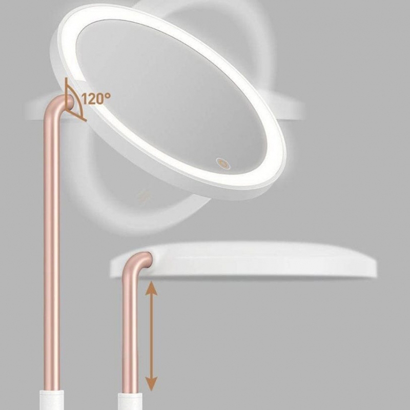 پیدا کردن آینه ای که نوردهی مناسبی داشته باشد و همین طور دارای کیفیت بالا باشد گاهی دشوار می باشد اما برند معتبر باسئوس این بار با آینه ارایشی چراغ دار Smart Beauty Series Lighted Makeup Mirror With Storage Box نیاز به یک آینه آرایشی با کیفیت را بر طرف کرده است، این کالا دارای شدت روشنایی 50 لومن می باشد. باسئوس برای این محصول آینه ای گرد که دارای 36 لامپ LED به رنگ سفید مهتابی در نظر گرفته که دمای آن 4000 کلوین می باشد و باعث می شود که روشنایی مناسبی ارائه شود که باعث زیبایی محصول نیز شده است، ابعاد این محصول 16.3*15*29 سانتی متر می باشد و همین طور وزن آن 380 گرم است، لازم به ذکر است که این آینه یک جعبه کشویی دارد که می توان برخی وسایل کوچک را درون آن گذاشت و این جعبه پایه محصول نیز هست، آینه با کیفیت HD این محصول در اندازه 4.5 اینچ (11.43 سانتی متر) است که به خوبی و کامل صورت را پوشش میدهد، ارتفاع این محصول قابل تنظیم و بین 19 تا 25 سانتی متر است که بتواند تنظیم درست آینه برای دیدن نقاط مختلف صورت را آسان کند، همین طور می توان زاویه آینه را تا 120 درجه تغییر داد که این ویژگی نیز برای دیدن دقیق نقطه مورد نظر کمک کننده می باشد و همین طور با کلید لمسی که در پایین آینه قرار دارد می توانید نور محصول را روشن و خاموش کنید و همین طور امکان تنظیمات نور نیز دارد که به صورت زیر می باشد. با یک بار لمس برای تنظیم کردن 3 میزان نور متفاوت - یک لمس طولانی برای تغییر دادن طیفی نور
