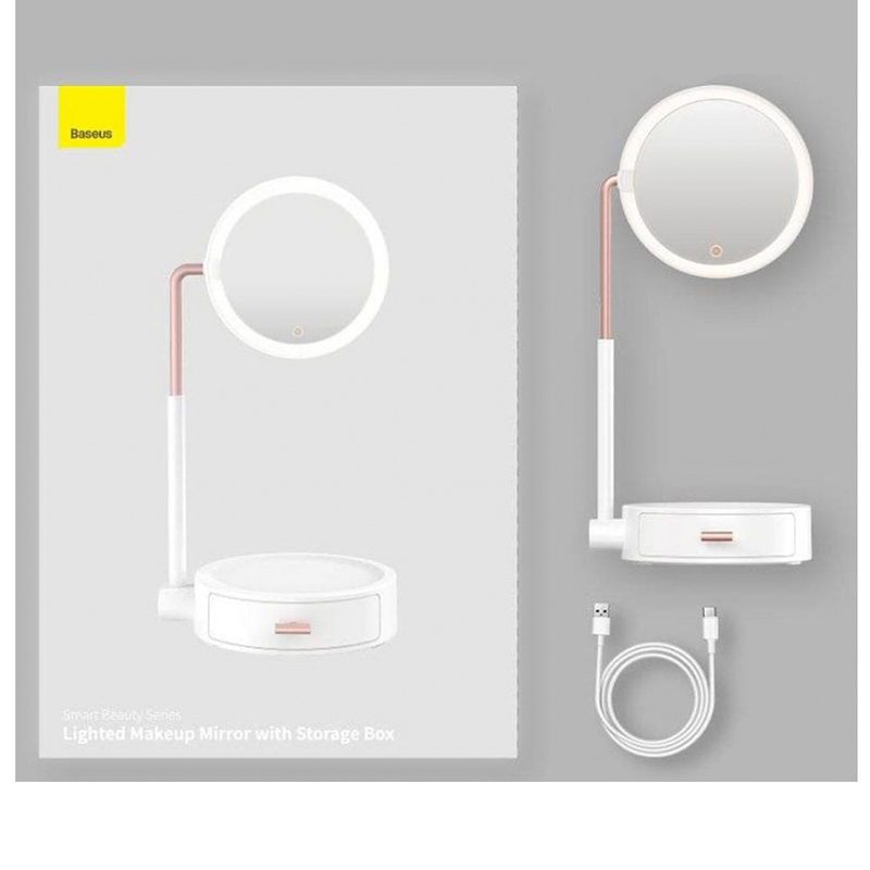 آینه آرایشی رومیزی باسئوس | Smart Beauty Series Lighted Makeup Mirror with Storage Box DGZM-02