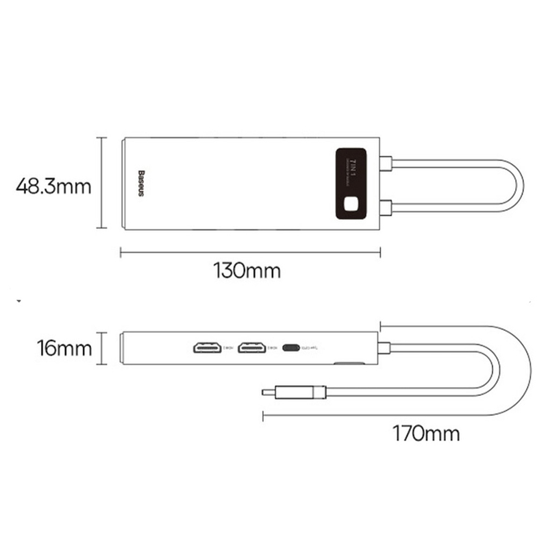 این هاب دارای 7 درگاه مختلف به همراه یک کابل تایپ سی متصل به خود می باشد که می تواند نیاز کاربران را به داشتن درگاه های متنوع برطرف کند، درباره مشخصات پورت های این محصول هم باید بگوییم که دارای سه درگاه USB 3.0 با حداکثر سرعت انتقال داده 5Gbps ( با توانایی اتصال به USB2.0 و USB1.1 )، یک درگاه Type-C ، دو درگاه hdmi و یک درگاه rj45 ( همان درگاه lan ) می باشد.