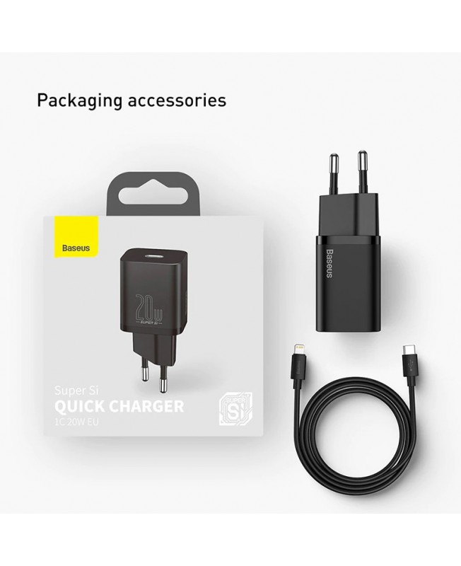 شارژر دیواری به همراه کابل باسئوس | Baseus Super Si Quick Charger 1C 20W Sets