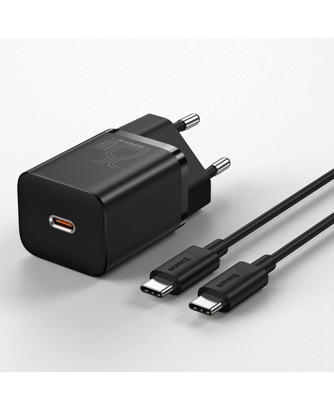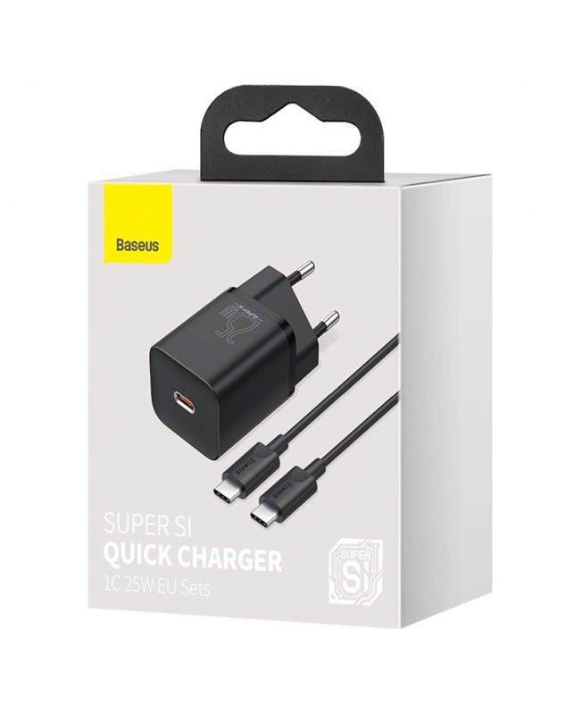 شارژر دیواری همراه با کابل باسئوس | Baseus Super Si Quick Charger 1C 25W Sets