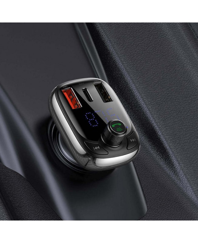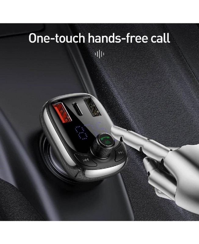 شارژر فندکی و پخش کننده موسیقی T TYPED برند بیسوس با ابعاد 72*35*50 میلی متر و وزن 50 گرم دارای دو پورت USB و یک پورت Type-C برای شارژ همزمان 3 دستگاه می باشد و با بدنه ای از جنس پلاستیک + ABS ساخته شده که مقاومت بالایی در برابر ضربه ، فشار و حرارت دارد؛ از این شارژر فندکی علاوه بر شارژ سریع گوشی خود می توانید به عنوان یک FM Player با اتصال از طریق بلوتوث ، فلش مموری یا کارت حافظه استفاده کنید و با کیفیت عالی به پخش موسیقی و انجام مکالمات در هنگام رانندگی بپردازید. شارژر فندکی T TYPED با یک نمایشگر بر روی خود توانایی نشان دادن موج رادیو و میزان ولتاژ در حال شارژ را داراست و همچنین با سه کلید فیزیکی طراحی شده آن میتوانید به راحتی به کنترل موسیقی، ولوم و مدیریت تماسها بپردازید. یکی از پورتهای این محصول دارای فناوری های PPS ،PD3.0 ،QC4.0 ،QC3.0 ،SCP ،FCP است که به شما این امکان را میدهد تا در سریع ترین حالت ممکن گوشی خود را شارژ نمایید البته به این شرط که گوشی تلفن همراه شما از این فناوری ها پشتیبانی کند. در آخر باید به این نکته اشاره کرد که چیزی که این شارژ فندکی را جذاب کرده است بهره مندی از یک تراشه هوشمند جهت قطع خودکار جریان و محافظت از باتری گوشی شما و مسیریابی با اپلیکیشنها مخصوص جهت مشخص کردن مسیر اشاره کرد.