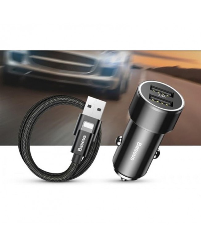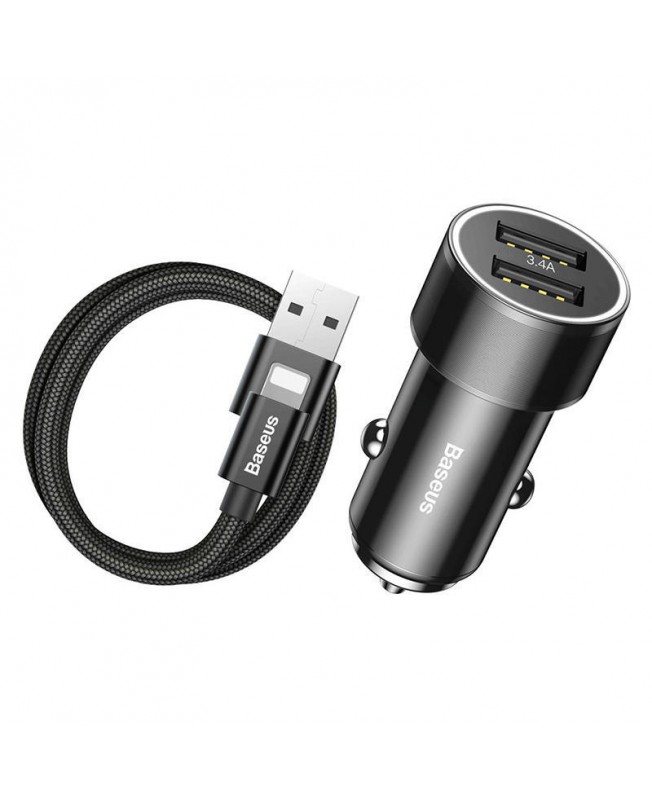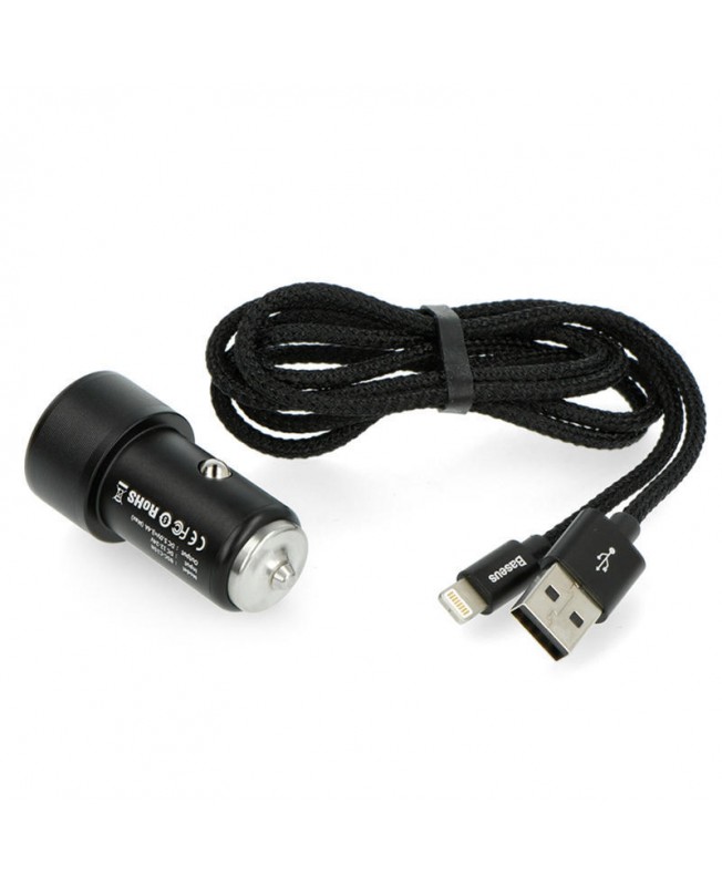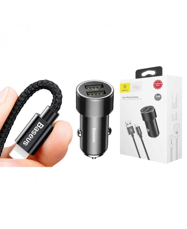 شارژر فندکی بیسوس که دارای 2 پورت USB است که می تواند دستگاهای شما را با شدت جریان و ولتاژ 5V-3.4A شارژ کند؛همچنین در بسته بنذی این محصول نیز یک کابل 100 سانتی متری لایتنینگ وجود دارد.