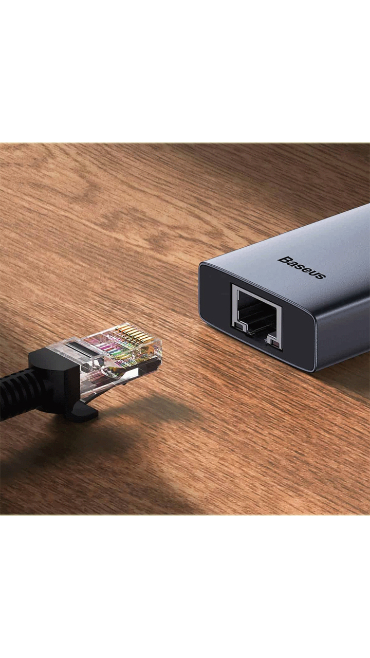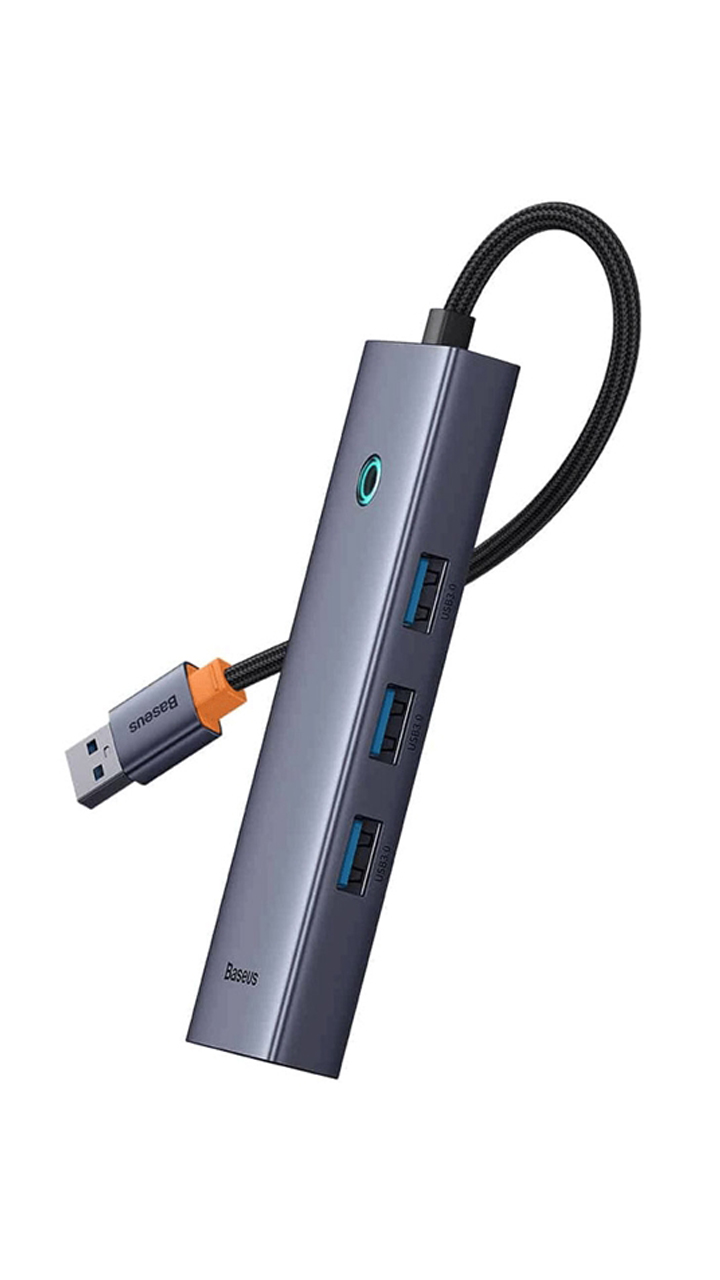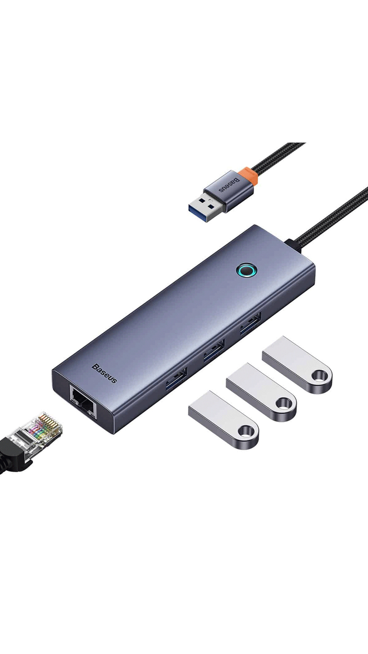 هاب چهار پورت مدل baseus hub usb-a oh109 یکی از پرطرفدارترین محصولات کمپانی باسئوس است. از این دستگاه معمولا در زمان هایی که تعداد پورت های USB لپ تاپ و رایانه محدود می باشد، استفاده می شود. این هاب دارای 4 عدد پورت USB است که می تواند داده ها و اطلاعات شما را با سرعت 5 گیگابایت بر ثانیه انتقال دهد. در این محصول از یک پورت RJ45 مخصوص کابل های اترنت نیز استفاده شده و می توان گفت آن را به یک دستگاه همه کاره و کاربردی تبدیل کرده است.