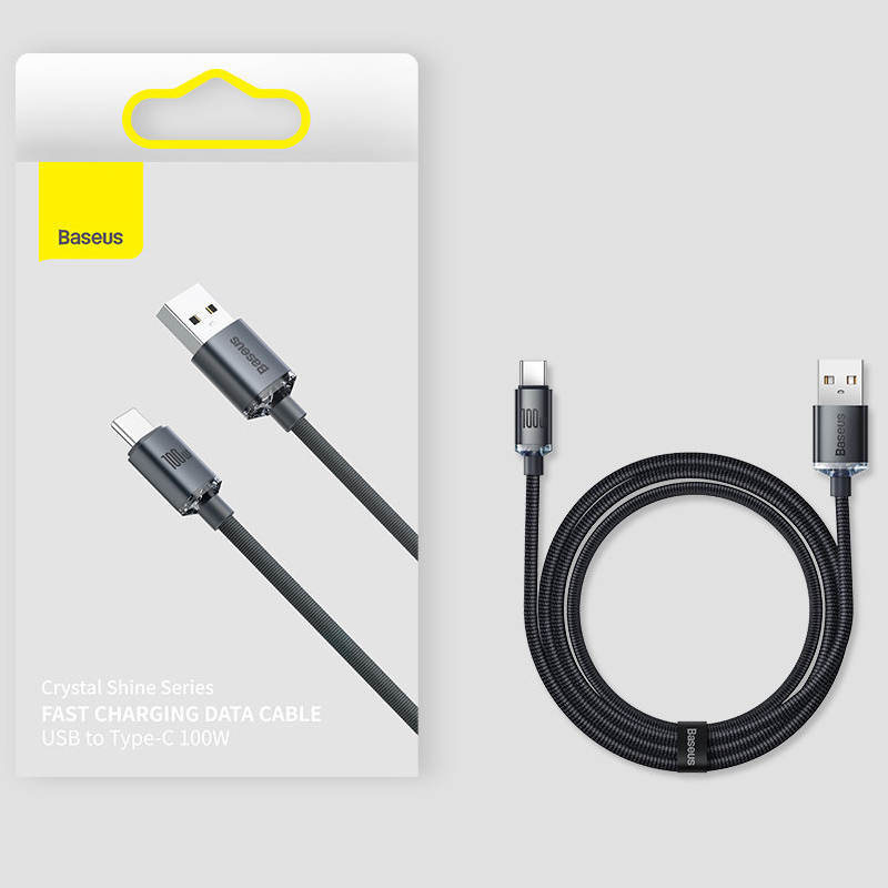 کابل USB به Type-c از سری مدل Crystal Shine محصول شرکت Baseus می باشد که می توان با استفاده از آن دستگاه های دارای درگاه تایپ سی را شارژ کرد، البته به این نکته نیز توجه داشته باشید که این محصول توانایی انتقال اطلاعات را با حداکثر سرعت 480Mps داراست. جنس کابل باسئوس از جنس کنفی ساخته شده و دارای طول 120 سانتی متری می باشد که همین موضوع سبب شده تا این کابل به راحتی قابل حمل باشد.در آخر هم باید اشاره کرد که این محصول از حداکثر شدت جریان 6 آمپر و ولتاژ 11 ولت پشتیبانی می کند و ی تواند تا حداکثر خروجی 100 وات را در اختیار کاربران قرار دهد.(البته برای استفاده از حداکثر خروجی باید آداپتور مورد استفاده نیز از این توان پشتیبانی کند.)