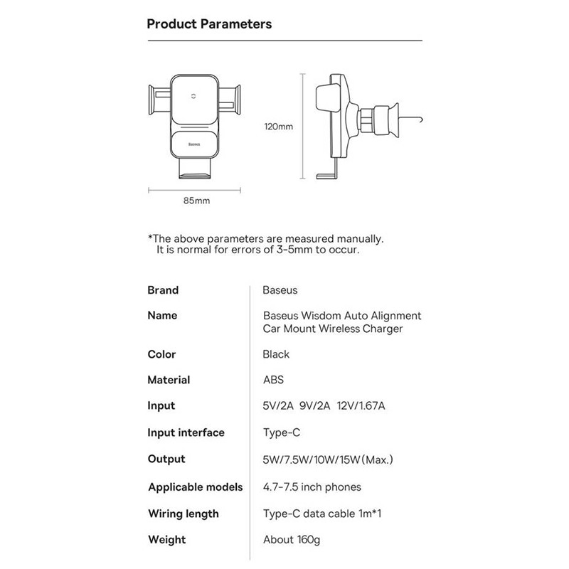 این محصول توانایی نگهداری گوشی های تلفن همرایی با سایز 4.7 تا 7.5 اینچ را به راحتی بر روی خود دارد و همچنین می تواند گوشی های تلفن همرایی که از فناوری وایرلس شارز پشتیبانی می کنند را بدو نیاز به اتصال سیو و تا توان 15 وات شارز کند