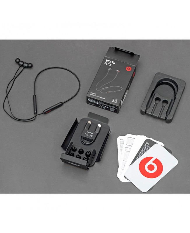 هندزفری بلوتوثی بیتس مدل Beats Flex دارای وزنی سبک و 18.6 گرمی است و از نوع تو گوشی می باشد. وقتی هدفون بلوتوثی بیتس Beats Flex را جعبه گشایی کنید ، علاوه بر خود ایرفون ، کابل شارژ دو سر Type-C ، پد های تو گوشی سیلیکونی و کاتالوگ کالا در جعبه محصول قرار دارد. نوع اتصال به Beats Flex نیز بصورت بلوتوثی است و با گوشی های اندرویدی و اپل سازگاری کامل دارد. با یک بار شارژ کامل می توان تا 12 ساعت از ایرفون بیتس Flex استفاده کرد که زمان خوبی برای یک ایرفون سبک می باشد. همچنین Beats Flex از شارژ سریع پشتیبانی می کند بدین صورت که به ازاء هر 10 دقیقه شارژ می توانید تا 1.5 ساعت از آن استفاده نمایید. برای انجام مکالمات هم می توانید روی Beats Flex حساب ویژه ای باز کنید ، چرا که یک میکروفون با کیفیت روی آن وجود دارد و انجام مکالمات را به خوبی منتقل می کند.