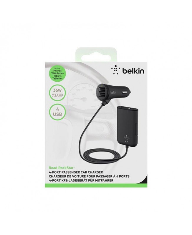 شارژر فندکی بلکین مدل F8M935BT06 با 4 درگاه خروجی و 36 وات توان خروجی بگونه ایست تا همه سرنشینان خودرو بتوانند از آن استفاده نمایند.