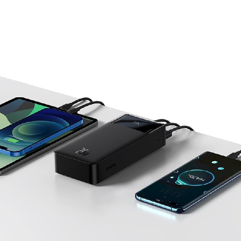 باسئوس با پاوربانک 30000 Bipow Digital Display Power Bank که دارای توان حد اکثری 20 وات می باشد نیاز ما به پاوربانکی قدرتمند که درگاه های متنوعی دارد را برطرف کرده است. این دستگاه دارای سه درگاه خروجی می باشد که شامل دو درگاه USB که دارای ولتاژ و شدت جریان خروجی 5V/3A,9V/2A,12V/1.5A برای شارژ گوشی می باشد و همینطور دارای یک درگاه Type-C با شدت جریان و ولتاژ خروجی 5V/3A,9V/2.22A,12V/1.5A می باشد و لازم به ذکر است که این محصول توانایی شارژ همزمان چند دستگاه را دارد.
