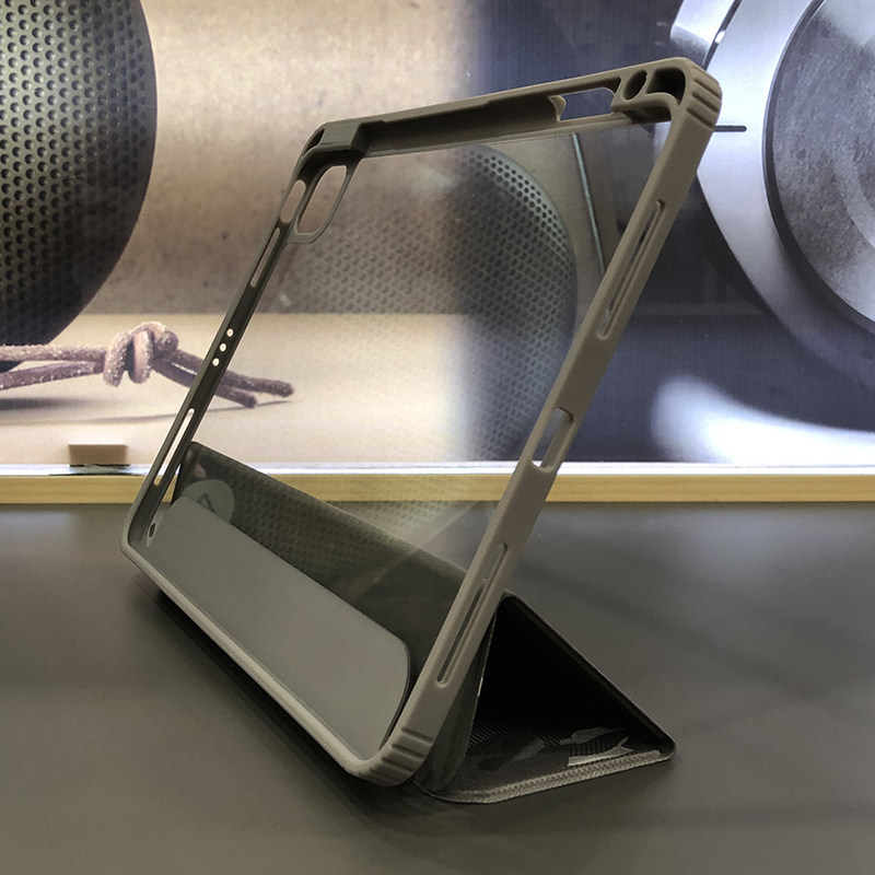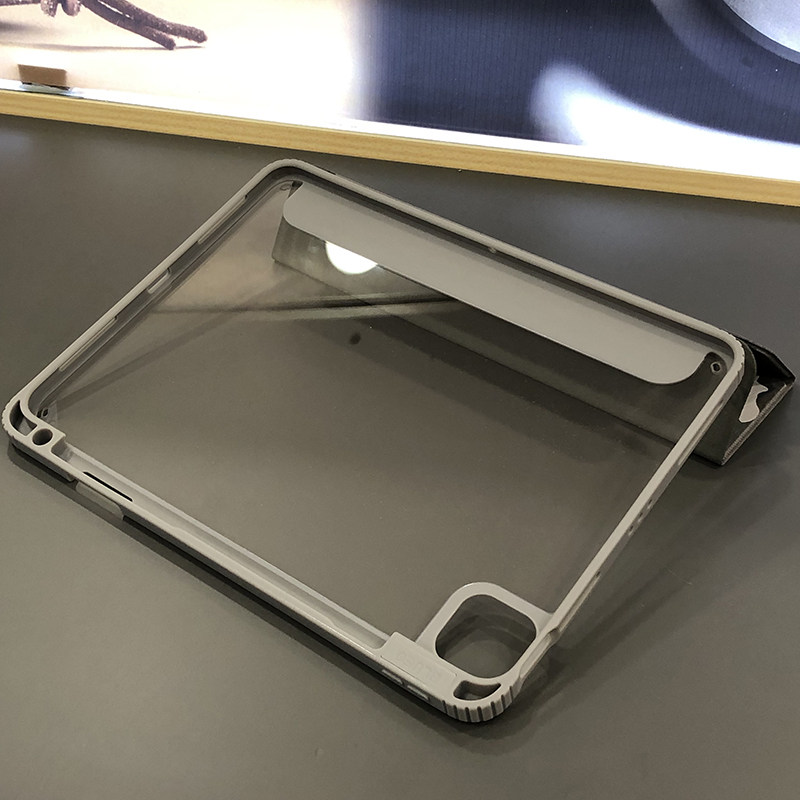 این کیف تبلت مخصوص آیپد Apple iPad Air 4 10.9 2020 و همین طور آیپد های 2021 iPad Pro 3 11 inch و iPad Pro 2 11 inch 2020 و iPad Pro 1 11 inch می باشد. جنس این محصول که به آن مقامت بالایی از پلاستیک است، این کیف تبلت دارای قابلیت استند است که برای مواقعی مثل کار کردن و یا تماشای فیلم بسیار کار آمد است زیرا به راحتی می توان آیپد را در جایی ثابت گذاشت و صفحه تصویر را به خوبی مشاهده کرد. این کیف کلاسوری محافظی سه بعدی است و کل تبلت راپوشش می دهد برای همین علاوه بر بدنه از قسمت بالایی و پایینی تبلت نیز محافظ کرده و همچنین دارای برآمدگی در محل قرارگیری لنز می باشد که باعث شده فاصله ای بین لنز و سطح زمین ایجاد شود و از آن محافظت می کند. این کیف آیپد دارای برش هایی مناسب برای استفاده از درگاه های دستگاه می باشد و همین طور جای مخصوصی برای نگهداری خودکار مخصوص تبلت اپل را دارد، از دیگر ویژگی های آن می توان به این اشاره کرد که زمانی که درب کیف را باز کرده صفحه تبلت روشن شده و زمانی که آن بسته شود صفجه خاموش می شود.
