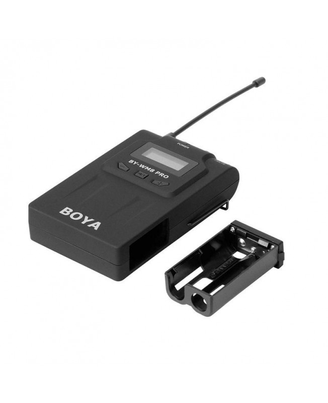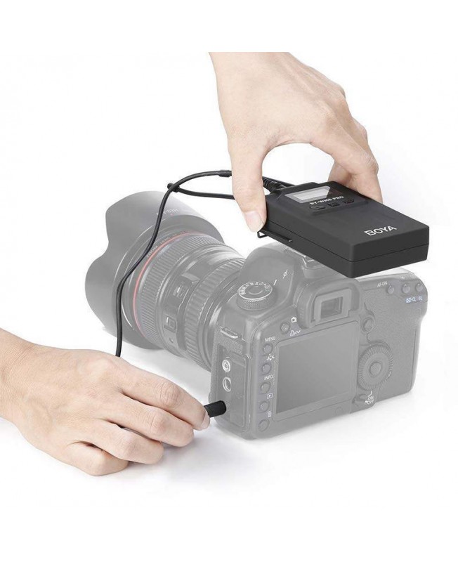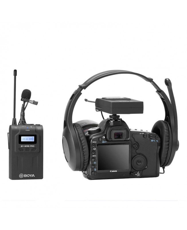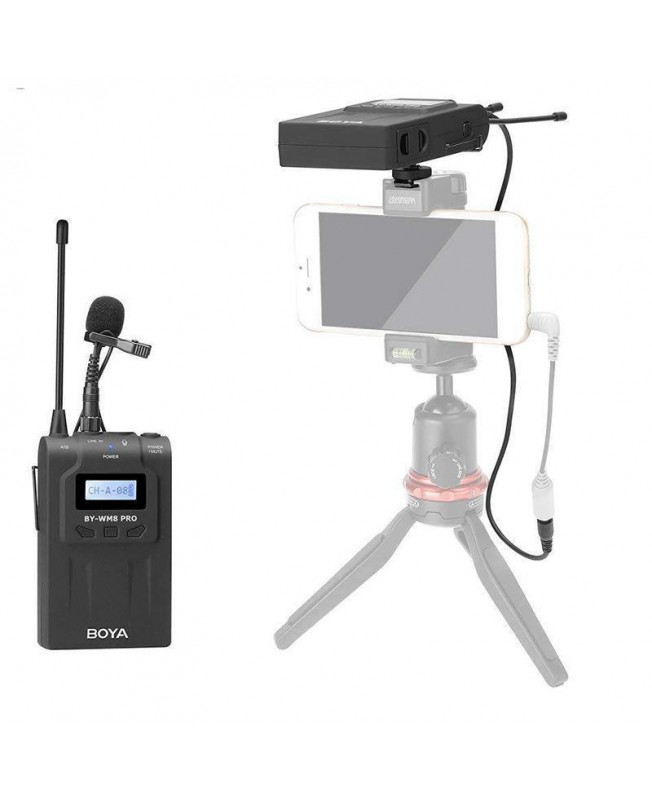 میکروفن بی سیم BY-WM8 Pro-K1 برند بویا نسخه ارتقا یافته میکروفن وایرلس UHF است و به دلیل به کارگیری میکروفن بی سیم دو کاناله ی UHF بین کاربران به نام هاش اف شناخته می شود،و برای ضبط در موقعیتهایی که دو نفره مناسب می باشد همچنین بر روی این محصول LCD برای نمایش و دکمههایی برای تنظیم موج رادیویی قرار گرفته و می توانید از میکروفن WM8 که دارای وزن کم، مصرف بهینهی باتری ، برد زیاد و استفاده از الگوی قطبی Omni-Directional یا تمام جهتی این میکروفون را محصولی بی نطیر برای برای ضبط مصاحبه، ENG، EFP، ساخت فیلم و تولید محتوا استفاده نمایید. از دیگر قابلیتهای این محصول بویا میتوان به توانایی کارکردن تا 100 متر در مدت طولانی (حدودا ۶ ساعت) اشاره کرد.همچنین روی میکروفن وایرلس بویا BY-WM8 Pro-K1 یک ورودی مخصوص میکروفن و یک ورودی مخصوص فرستنده وجود دارد و از طریق هدفون ها می توان گیرنده را مستقیماً نظارت کرد.