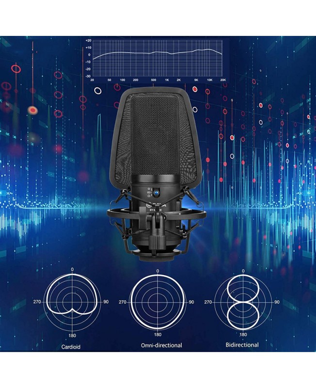 میکروفون BY-M1000 برند بویا با ابعاد 185*115*207 میلی متر و وزن 812 گرم یک میکروفون با سایز دیافراگم بزرگ (34 میلی متر) می باشد و دارای 3 الگوریتم قطبی ( Cardioid , Omnidirectional , Bi-directional ) است که می توانید به کمک دکمه طراحی شده بر روی این میکروفون بسته به نیازتان آن را در هر حالتی که می خواهید قرار دهید.همچنین از قابلیت های صوتی BY-M1000 می توان با بازه فرکانسی 20 تا 20 کیلو هرتز ، حساسیت 33dB+/-3dB و امپدانس 200 اهمی اشاره کرد که در کنار پایه ضد شک و پارچه خشگیر صدا می تواند صدا را به بهترین شکل و به صورت طبیعی ضبط کند.در آخر هم باید گفت که درون بسته بندی ام هزار یک پاپ فیلتر به همراه کابل XLR به طول سه متر قرار داده شده است.