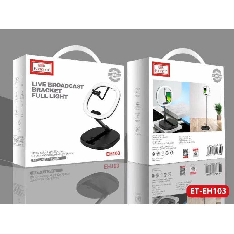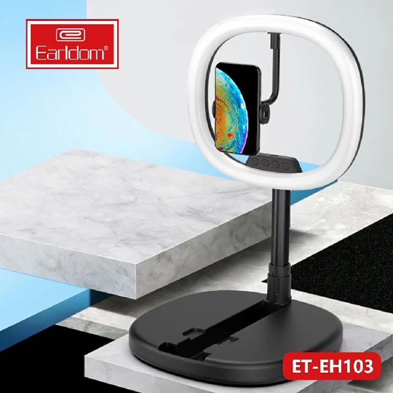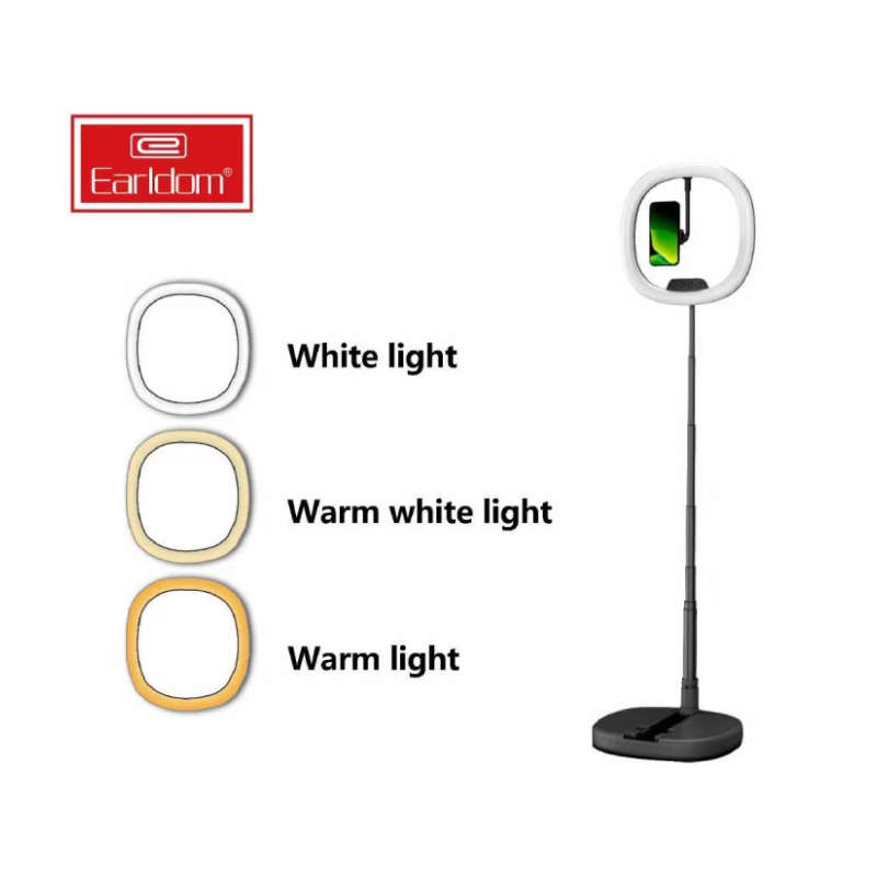 برند ارلدام یک از برند های فعال در زمینه ی لوازم جانبی موبایل بوده و حالا با عرضه ی رینگ لایت ET-EH103 به بازار ، فعالیت خود را در این زمینه گسترش داده است. رینگ لایت ارلدام Earldom ET-EH103 از جنس پلاستیک ABS بوده و ارتفاع آن تا 180 سانتی متر می رسد. طراحی این رینگ لایت به شکل تا شو بوده و در صورت نیاز به جا به جایی می توانید آن را به ابعاد کوچک 30 * 30 * 7.5 سانتی متر برسانید و به راحتی هر چه تمام تر آن را جا به جا کنید.دمای رنگ رینگ لایت
