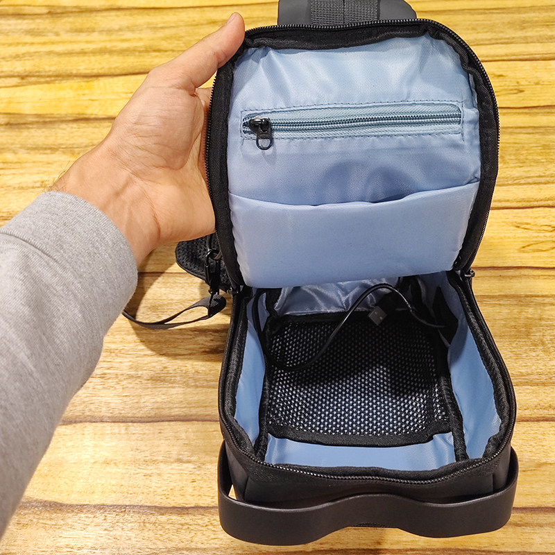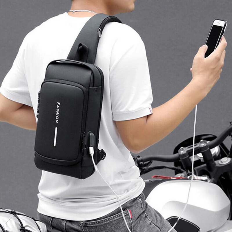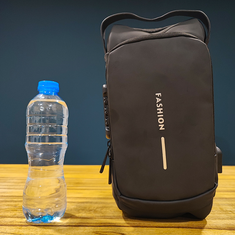 این کیف از جنس پلاستیک و بسیار سبک و خوش دست ساخته شده و دارای مقاومت مناسبی در برابر آب می باشد، لازم به ذکر است که نحوه قرار گیری این کیف روی بدن به صورت کراس بادی بوده و در جلو و یا پشت بدن قرار می گیرد که هنگام استفاده حس خوبی را به شما منتقل می کند . نقطه مثبت این کیف قفل رمز دار آن که می باشد که به وسیله آن می توانید رمز 3 رقمی تعیین کرده و زیپ ها را در صورت تمایل داخۀ آن قرار دهید. همچنین هنگام باز و بسته کردن زیپ کیف رمز دار کراس بادی Fashion ، کیفیت بالای ساخت آن نمایان می شود. از این کیف جهت حمل لوازم جانبی مانند : انواع شارژر ، پاوربانک ، فلش ، هارد اکسترنال و هندزفری می توان استفاده کرد.یکی از نقاط مثبت این کیف وجود پورت و کابل USB می باشد که از طریق آن می توانید به طور مثال گوشی خود را به پاور بانک داخل کیف متصل کرده و راحت تر از آن استفاده کنید. در آخر هم باید اشاره کرد که با توجه به وزن پایین این کیف، حمل آن به آسانی صورت گرفته و به لطف طراحی هوشمندانه ی خود وسیله های حساس و کوچک نظیر فلش مموری و رم و هندزفری ، با نظم مناسبی قرار می گیرند. این مدل کیف پوسو دارای 5 زیپ و 7 جای مختلف می باشد.