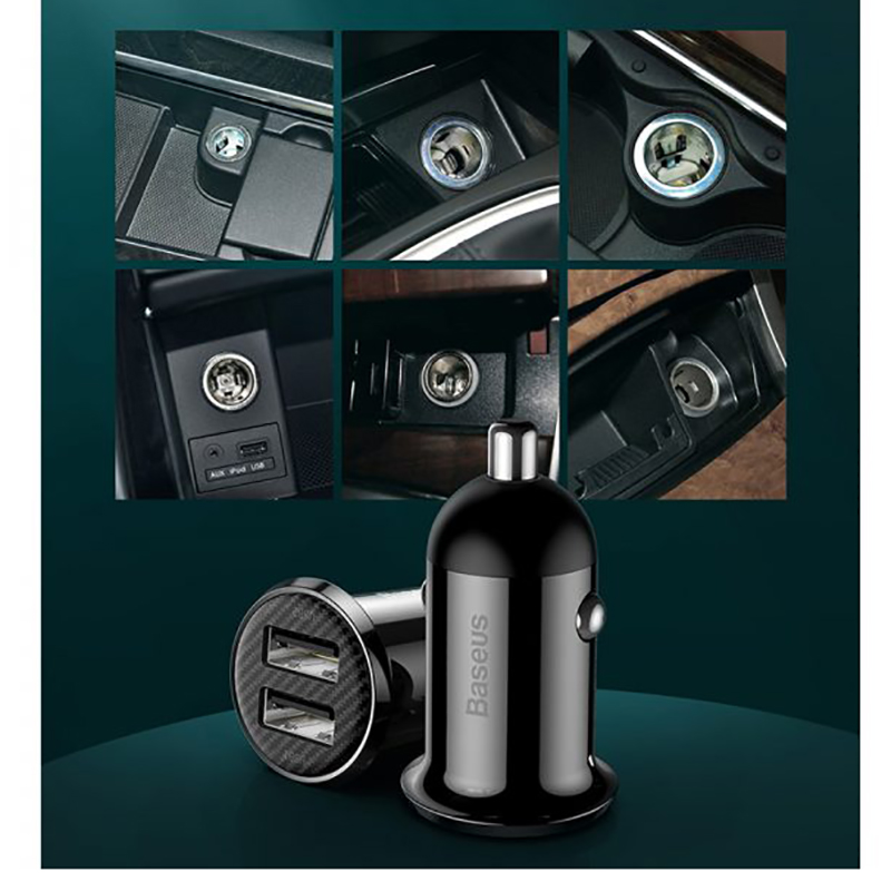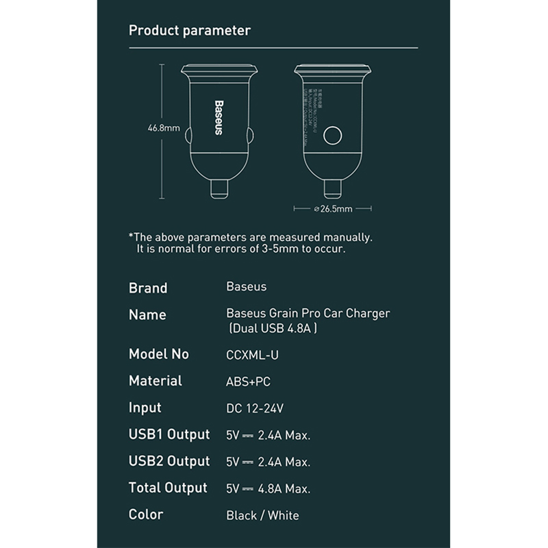 شارژر فندکی باسئوس Baseus Grain Pro Car Charger Dual USB 4.8A