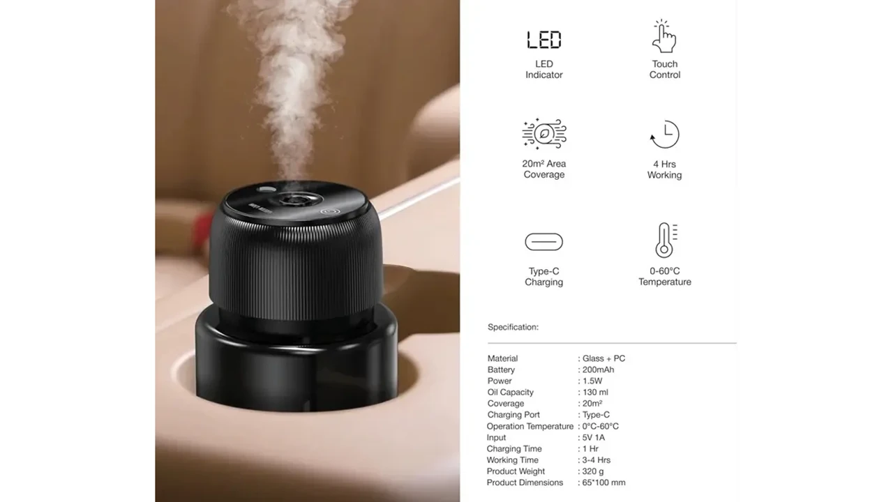 انعطافپذیری در استفاده: با سه حالت پخش و ظرفیت 130ml، میتوانید بسته به نیازتان رایحه را تنظیم کنید.