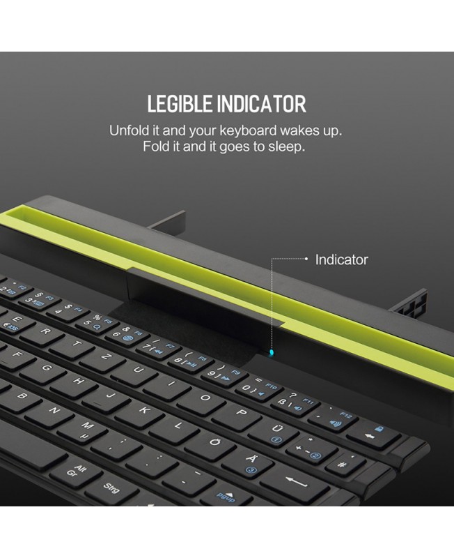 از ویژگی های این محصول می توان به قابلیت استند که این امکان را فراهم می سازد تا بتوانید گوشی موبایل و تبلت خود را بر روی آن قرار دهید و حمل به صورت تاشو اشاره کرد که باعت شدت تا این کیبورد به محصول کاربردی تبدیل شود ، از طرفی هم باید گفت که این کیبورد توانایی اتصال به چند دیواس را دارد و برای این کار هم باید ابتدا دستگاها را با این محصول متصل کرده باشد و برای تغییر اتصال بین آنها کلید FN را به همراه کلید 1 ، 2 و 3 بفشارید ( هر یک از این اعداد نشان دهنده یک دستگاه می باشد)؛ در آخر هم باید گفت که بر روی این صفحه کلید دو زبان انگلیسی و عربی وجود دارد و به صورت اتوماتیک نیز خاموش/روشن می شود.