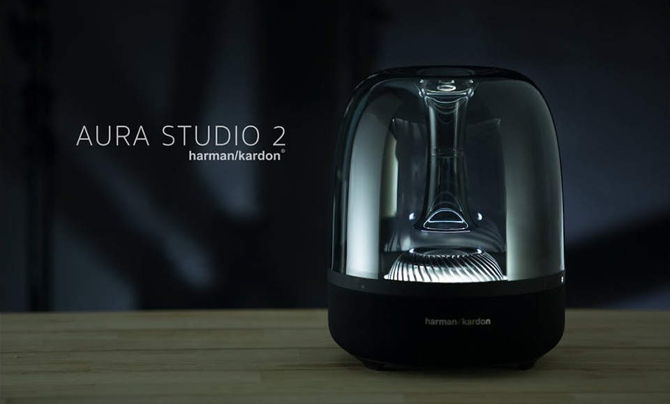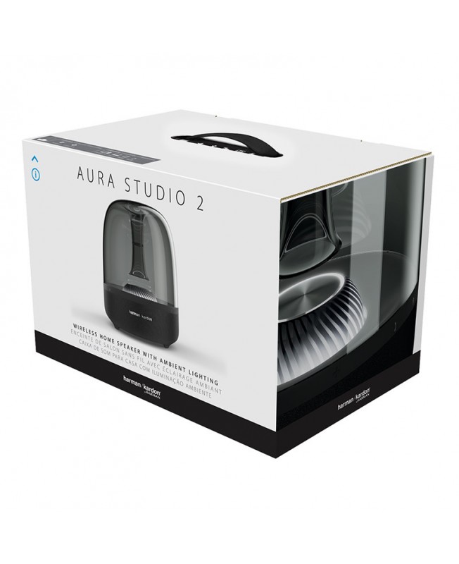اسپیکر Aura Studio 2 محصول سال 2017 کمپانی Harman Kardon که از طریق فنآوری بلوتوث و جک 3.5 میلیمتری (aux) به تلفن همراه یا پخش کننده صوتی متصل میشود و دارای صدای خارق العاده و بیس قدرتمند360 درجه و همچنین طراحی نمادین از شاخصههای این اسپیکر است، این محصول مجهز به طراحی نور محیطی شده است که از مرکز اسپیکر پخش شده و گنبدی با نور سفید براق بسیار زیبا برای شما میسازد.