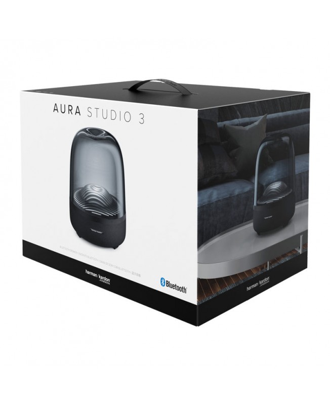 مدل جدید اسپیکر های برقی هارمن کاردن که دارای بلوتوث نسخه 4.2 میباشد و نسبت به نسخه قبلی خود دست خوش تغییراتی شده از جمله تغییر در ظاهر شیشه ای آن، به این صورت که خرجی هوای اسپیکر در این نسخه مسدود و از طرفی هم نور ظریف داخل اسپیکر بسیار جذاب تر از مدل قبلی خود شده است. روی بدنهی ائورا استودیو 3 دکمههای لمسی برای کنترل آن وجود دارد که از طریق آن می توان روشن بودن ، بلوتوث ، ولوم موسیقی و نورپردازی دستگاه را کنترل کرد.همچنین نکته ایی که باید به آن اشاره کرد این است که در Aura Studio 3 بر خلاف نسخه قبلی خود دیگر خبری از دکمه ی پاسخگویی به تماسهای تلفنی نیست و شما نمیتوانید با این اسپیکر به تماس های خود پاسخ دهید. خرید اسپیکر هارمن کاردن در سایت هیلاتل